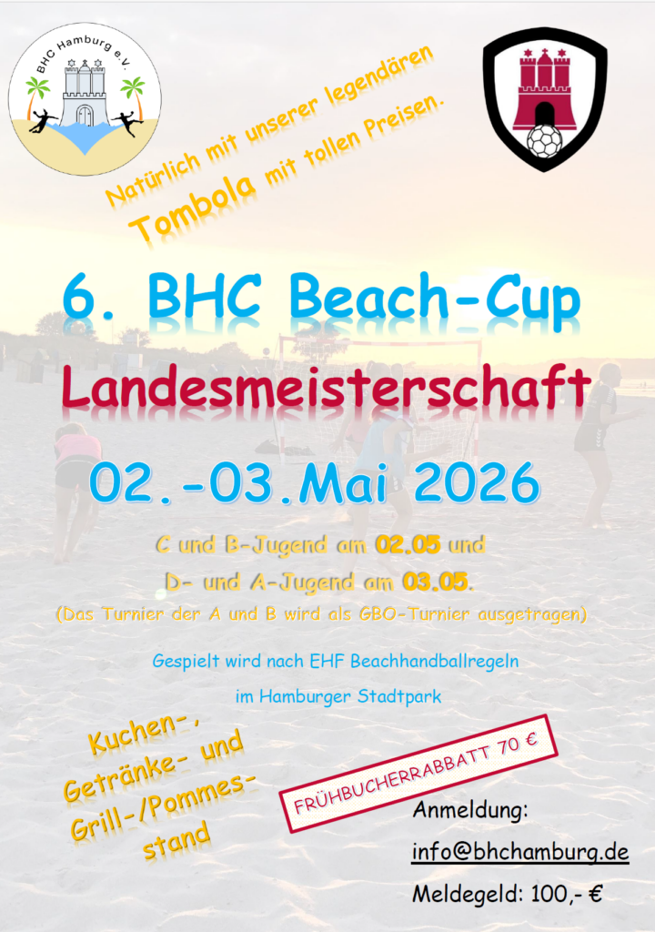 Der 6. BHC Beach-Cup – die Landesmeisterschaft im Beachhandball – steht an, und wir möchten euch unbedingt dabeihaben! 🙌