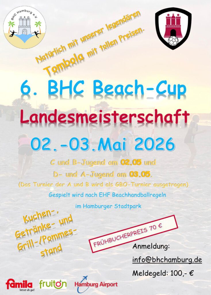 Der 6. BHC Beach-Cup – die Landesmeisterschaft im Beachhandball – steht an, und wir möchten euch unbedingt dabeihaben! 🙌